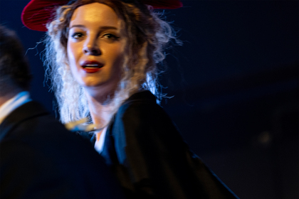 Молодой поэт Фредерик Зондергаард переживает творческий кризис. Чтобы как-то содержать семью, он занялся журналистикой. Однажды он приезжает в дом знаменитой писательницы Симоны Нильсен с целью взять у нее интервью. Между ними возникает сложная связь, несмотря на то, что он женат и она на 30 лет его старше. Кто она для него? Наставница, возлюбленная, искуситель? Почему их встреча меняет жизнь каждого? Как факты биографии и взаимоотношения превращаются в страницы их произведений? Какой роман для них важнее — тот, что происходит между ними, или тот, который каждый из них пишет, разговаривая с вечностью? Пьеса Леопольда Стефенсена вдохновлена эпизодами из биографии датской писательницы Карен Бликсен и датского поэта Торкиля Бьёрнвига. История их взаимоотношений не раз оказывалась в центре внимания драматургов и режиссеров. В спектакле Сергея Аронина роль Симоны Нильсен исполняет Евгения Крюкова, а роль Фредерика Зондергаарда — Никита Мучкаев.