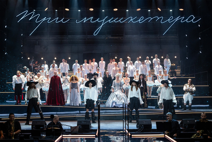 Драматический концерт Евгения Марчелли «Три мушкетёра» – это музыкальная феерия, которая подарит невероятное удовольствие и радость всем зрителям. Яркие вокальные и танцевальные номера под любимую музыку в сопровождении живого оркестра, юмор, страсть, коварство и любовь в исполнении звезд Театра Моссовета и молодых, талантливых артистов труппы. Драматургической основой постановки послужила самая авантюрная и захватывающая сюжетная линия в романе Дюма-отца – история с подвесками, подаренными Королевой Франции Анной Австрийской Герцогу Бэкингему, которые должен во что бы то ни стало вернуть юный Д’Артаньян и его друзья. Однако на первый план в этом сложносочиненном действе выходит музыкальная составляющая, именно поэтому режиссер Евгений Марчелли определил жанр, как драматический концерт. Зрителей ждет более двадцати музыкальных номеров, легко и изящно вплетенных в сюжетную канву. Для разработки и постановки хореографии приглашен Егор Дружинин. Акцент в танцевальных номерах будет сделан на создании и исполнении сложных ритмических рисунков, которые звучат как ударный инструмент, в основе которых американский степ. Музыкальным продюсером традиционно выступает Мария Галлиардт. Евгений Марчелли: «Для меня “Мушкетёры” – это всегда история про дружбу и любовь, про романтическую легкость от жизни, от авантюры, от молодости. Хочется мажорного, эмоционально насыщенного действа, не побоюсь этого слова, феерии. Именно так мы хотим воплотить этот материал на сцене. Сегодня нашей главной задачей является, на мой взгляд, подарить зрителю три часа радости в театре».